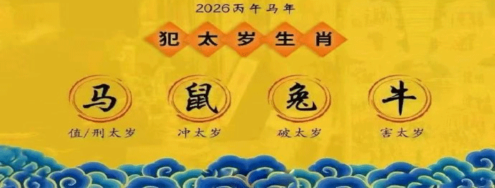 【2026年化太岁灵符】2026年犯太岁生肖马(值太岁)牛(害太岁)鼠(冲太岁)兔(破太岁)
